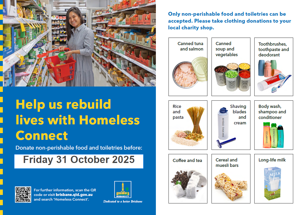 You can drop off donations to my office at Fairfield Gardens until Friday, 31 October 2025.